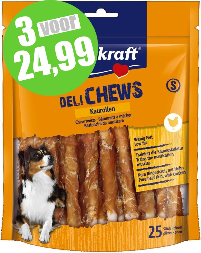 DeliCHEWS kauwrollen zijn een heerlijke aanvulling op de dagelijkse voeding van de hond. De kauwrollen van pure runderhuid zijn omhuld met puur kippenvlees voor extra lang kauwplezier. De hartige kauwsnacks bevatten weinig vet en trainen de kauwspieren van de hond.