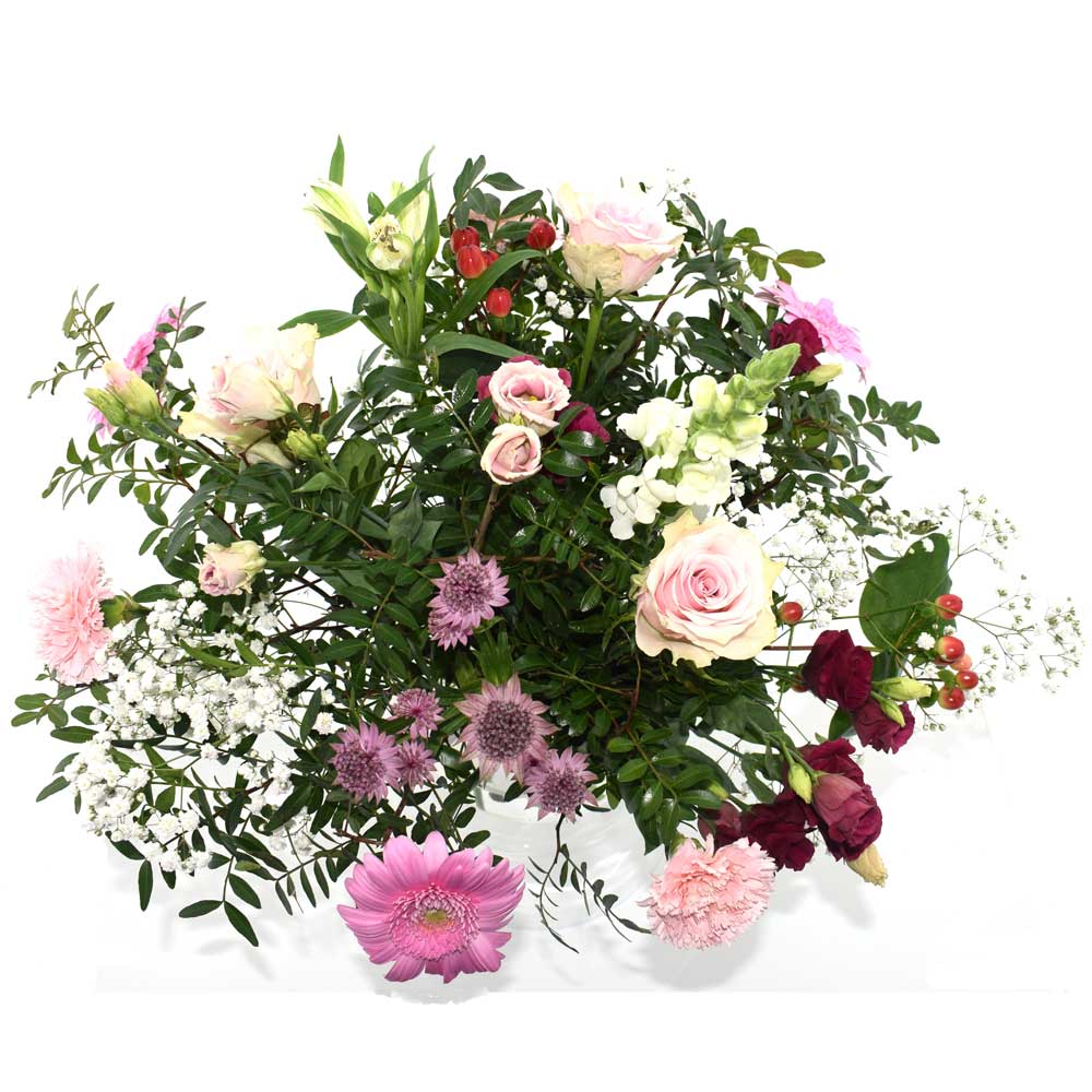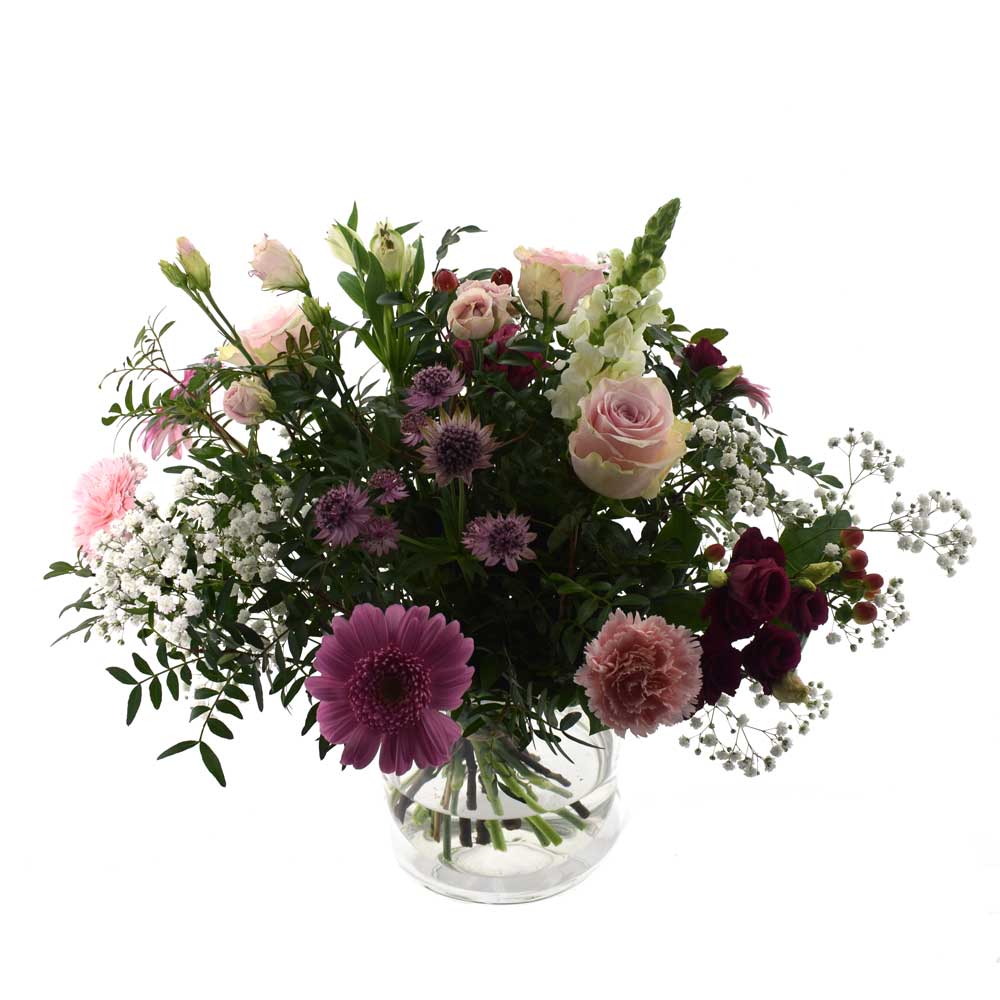 De Kamperfleur is een echte aanrader. Het bevat een combinatie van bloemen in diverse tinten roze met o.a. rozen en anjers er in. Dit boeket staat fantastisch in de woonkamer of op kantoor.