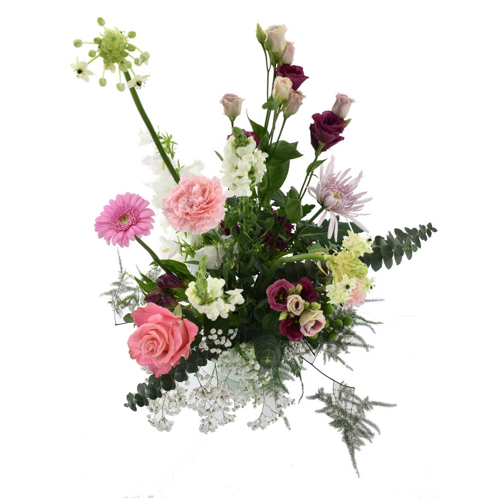 Dit veelzijdige boeket heeft veel warme tinten, waardoor het als een cadeautje op u afkomt. Bevat o.a. anjers, leeuwenbekken, chrysanten en gerbera’s.