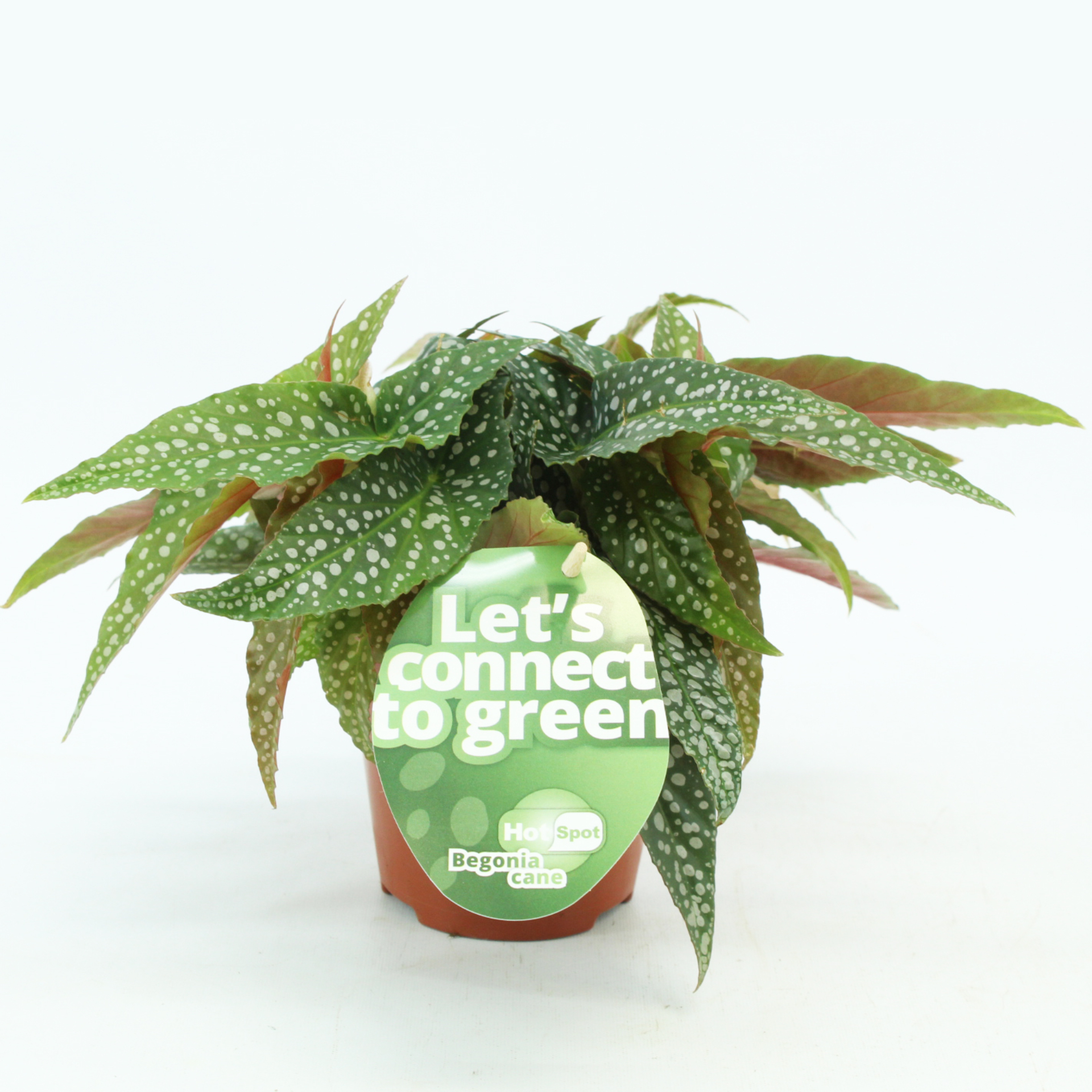 De Begonia cane Hotspot, een plant met mooi groen blad met witte stippen en past perfect in huis.