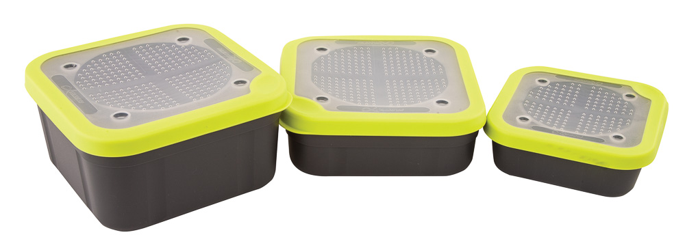 De nieuwe aas dozen van Matrix zijn perfect voor het vers houden van levend aas dankzij de ademende 'Easy fit' rubber gesealde deksel. De deksels zijn transparant voor het snel identificeren van de inhoud. De aas dozen zijn gemaakt van een schok resistent plastic dat wel tegen een stootje kan. Verkrijgbaar in 3 maten van 0,6, 1,2, en 1,8 liter.