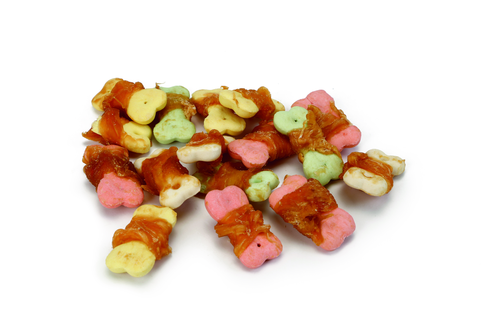 De Beeztees Cookie Wraps ie een lekkere hondensnack voor jouw trouwe viervoeter. Deze heerlijke koekjes omgeven met gedroogde kippenborst, kunnen worden gegeven als beloning of als traktatie. De verpakking is hersluitbaar. Inhoud: 100 gram
