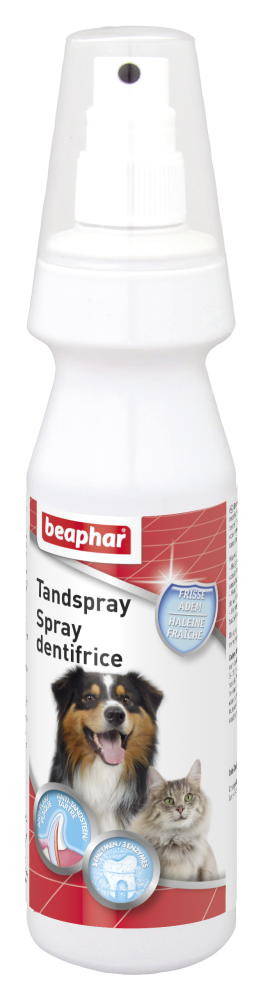 Door gebruik van de Tandspray krijgt uw hond of kat een schoon gebit en frisse adem. De spray bevat tandverzorgende enzymen en gaat tandplak en de vorming van tandsteen tegen.
