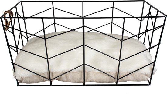 Deze stevige, zwarte Siesta mand van Duvo+ is een hippe rustplaats vervaardigd uit metaaldraad. Voor extra comfort en warmte is de mand voorzien van een warm kussen bekleed met linnen aan de ene kant en zachte long faux fur aan de andere kant. Het eigentijds design past perfect binnen elk interieur en het is de ideale plek voor jouw kat om in weg te dromen.