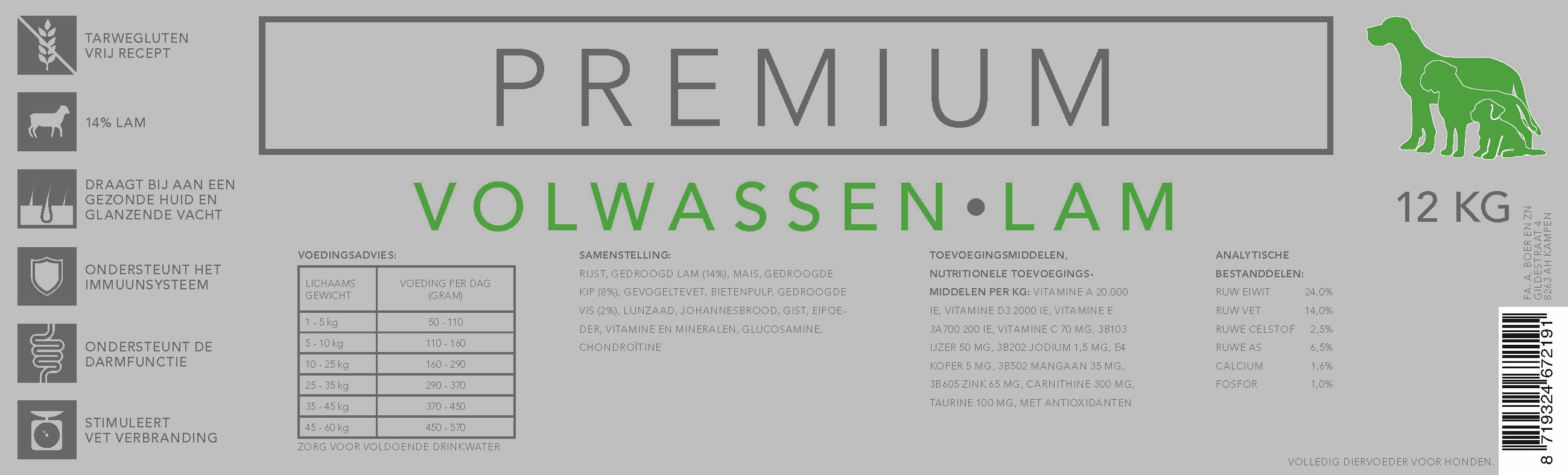 Puur Fit Premium Alle Rassen - Hondenvoer - Lam 12 kg