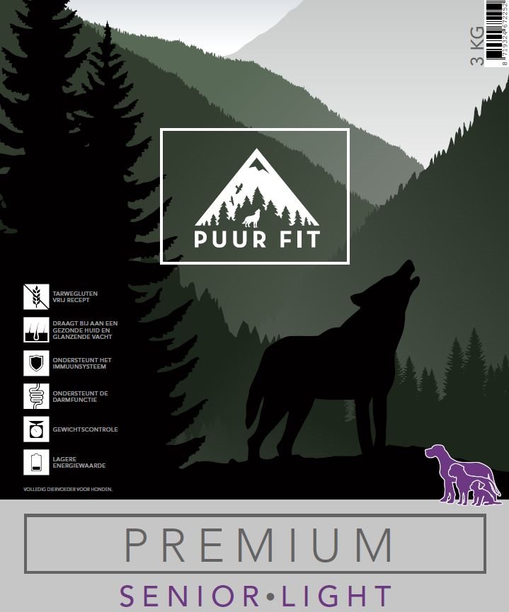 Puur Fit premium senior / light is een hondenbrok van kwaliteit. De brokken zijn gemaakt op basis van een tarwegluten vrij recept. Puur Fit bevat een hoog vleespercentage, deze brok bevat 14,5% kip en eend. Voor honden van alle rassen zijn deze brokken geschikt. Puur Fit draagt bij aan een gezonde huid en glanzende vacht door de toegevoegde zalmolie aan de brokken. Puur Fit premium senior / light zorgt voor een lagere energiewaarde en draagt bij aan gewichtscontrole. Ook ondersteunt Puur Fit het immuunsysteem en de darmfunctie. Tenslotte bevat Puur Fit alle benodigde vitamines en mineralen.
