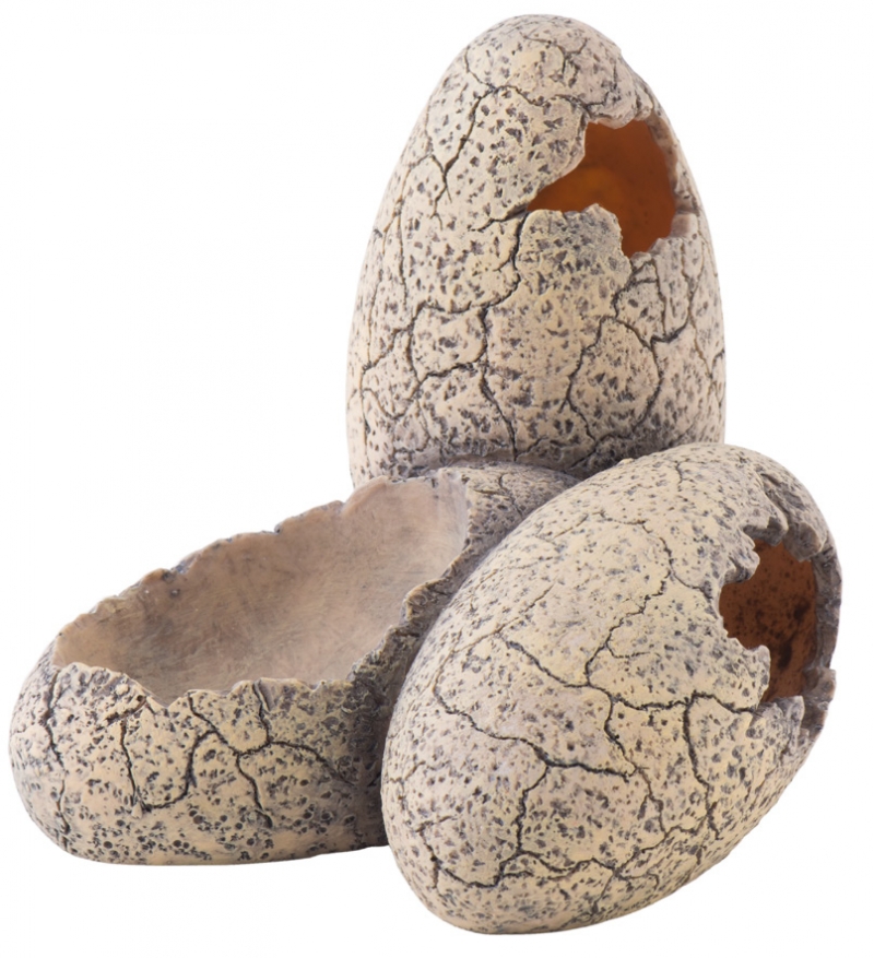 Haal de prehistorie in je terrarium met Dinosaurus eieren. Deze bieden niet enkel een schuilplaats maar gaan ook toelaten een vochtiger klimaat te creëren die thermo-regulatie, hydratatie en het vervellingsproces bevorderen. Het stress niveau van je reptiel zal dalen vanwege de veilige omgeving die je hem biedt.