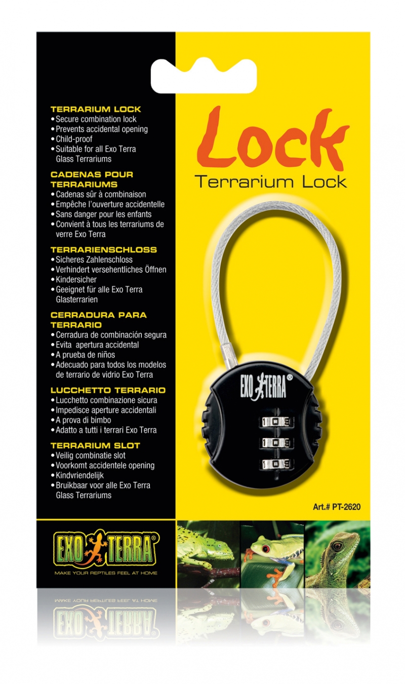 Exo-Terra Terrarium locker geschikt voor ET Glass terrariums en Screen terrarium. Een combinatieslot voorkomt dat het per ongeluk open blijft staan, ook voor kinderhandjes blijft het terrarium gesloten.