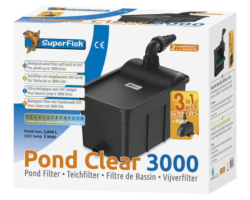 Eenvoudig biologisch vijverfilter met ingebouwde UVC en energiezuinige Pond-Flow Eco vijverpomp. Voor kleine vijvers tot 3000 liter.
