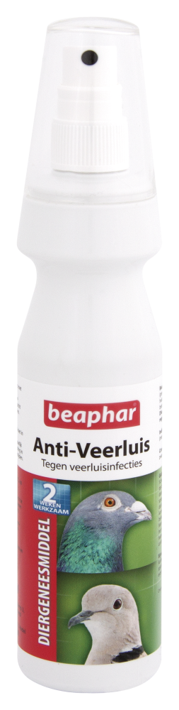 De Beaphar anti-veerluis spray is geschikt voor duiven en wordt gebruikt ter bestrijding van de veerluis. Door de duif licht te bevochtigen en de veren van achter naar voor in te sprayen wordt de huid van het dier behandeld. De behandeling kan, bij ernstige infecties, na 2 weken herhaald worden.