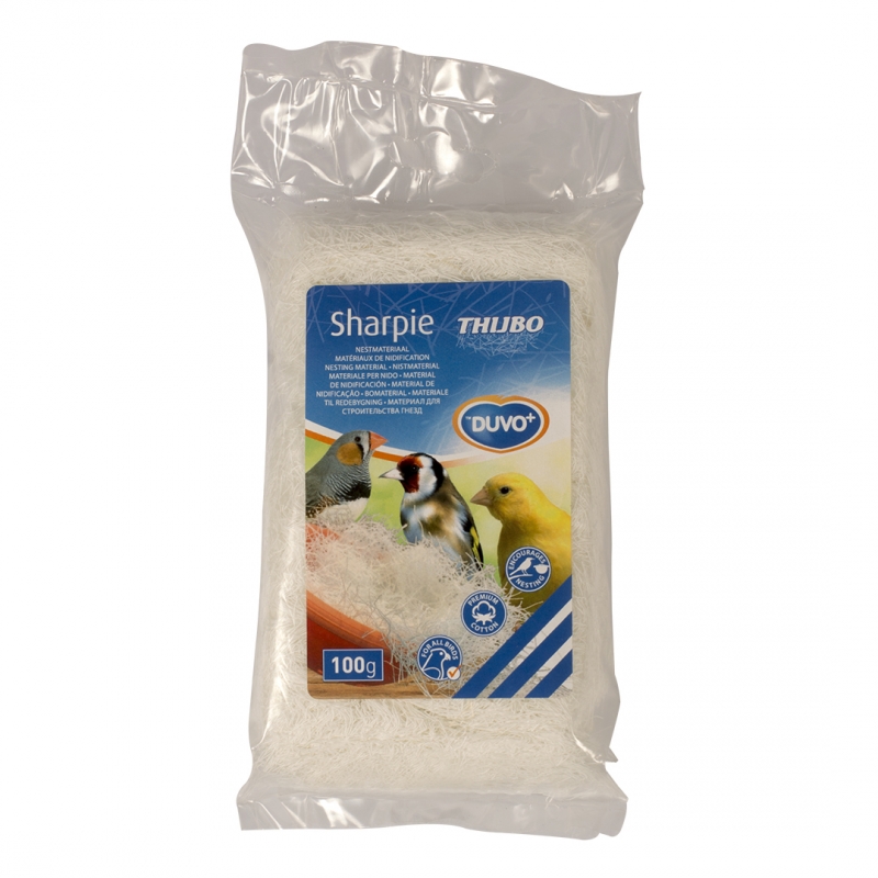 Door Duvo+ zorgvuldig geselecteerde katoenvezels (sharpie), uitermate geschikt als nestmateriaal voor diverse vogelsoorten. Inhoud 100 gram Merk Duvo+ Laat uw vogels een warm nest maken met dit nestmateriaal van Duvo+.