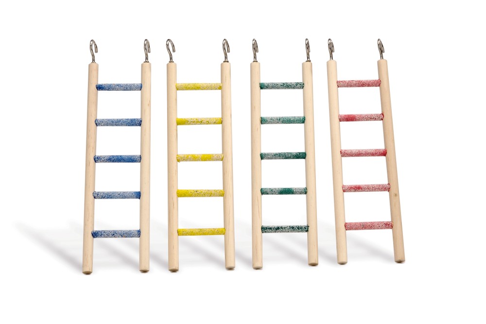 Een houten ladder pedicure met 5 treden omgeven door puimsteen. Zo kan uw vogel op een natuurlijke manier zijn nagels slijten. Voorzien van 2 metalen haken aan de bovenzijde, zodat de ladder makkelijk is op te hangen. Lengte: 24 cm. Kleur: assorti.